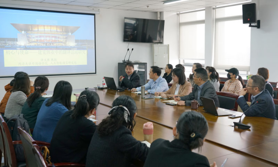 本网讯 为落实学习贯彻习近平新时代中国特色社会主义思想主题教育要求,更好地促进外国语学院党建与事业发展工作的深度融合,5月11日上午10时,外国语学院党委特邀同济大学博士生导师许文胜教授来院举办题为《初心与使命——建党伟业中的翻译活动研究》的学术讲座。讲座由外国语学院党委委员、教工第二党支部书记吴礼敬主持。学院党员老师聆听讲座。