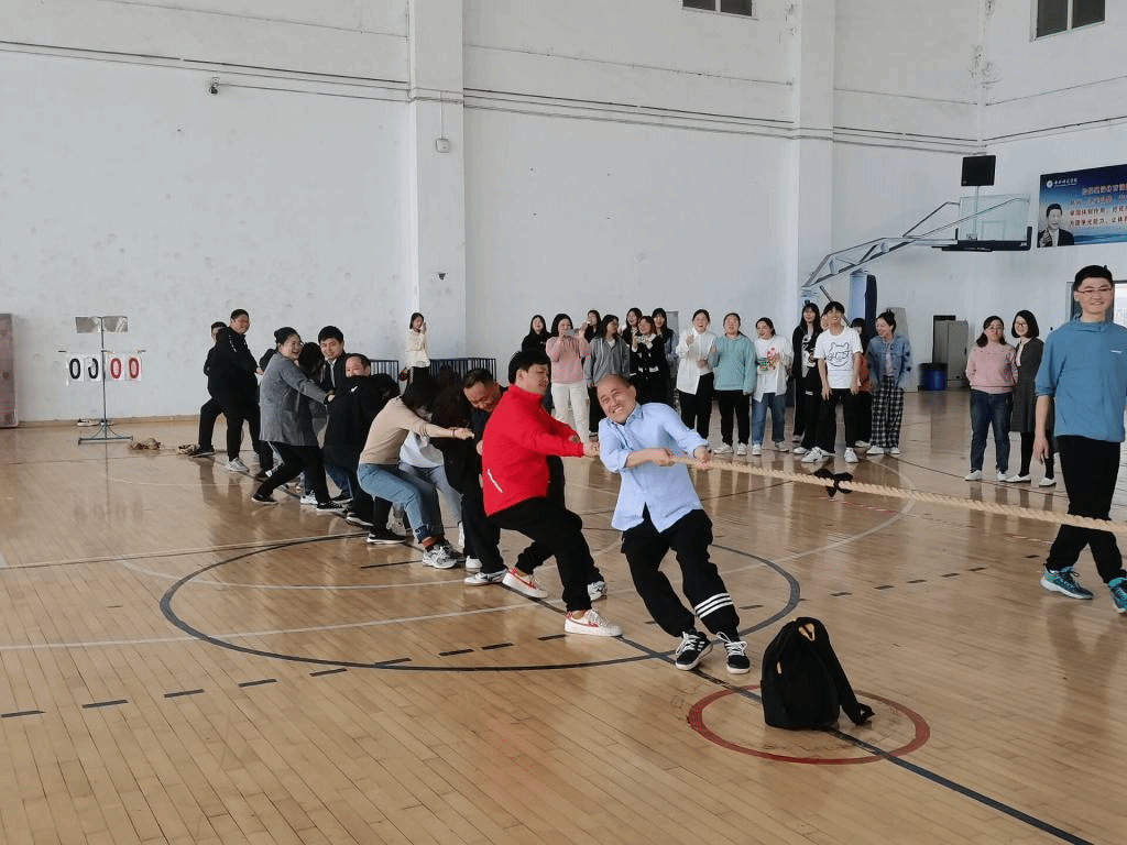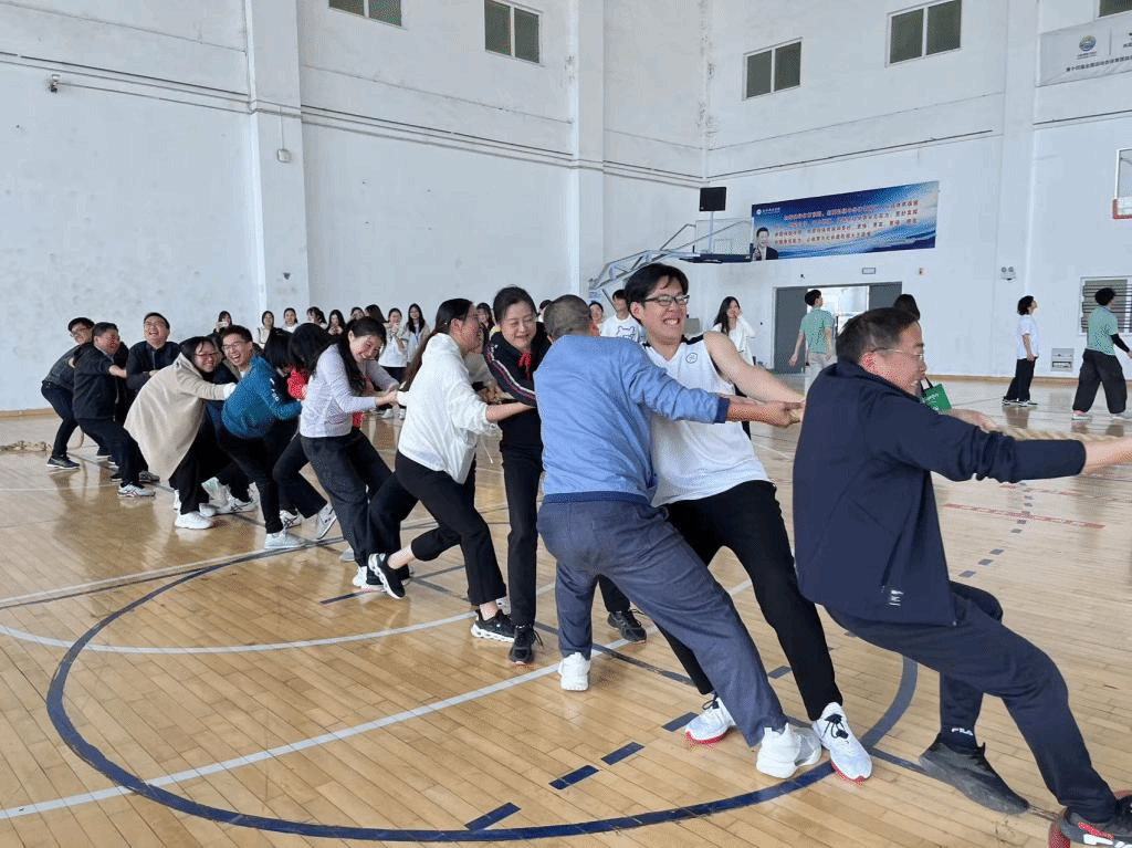 本网讯 为增进师生情谊,增强体育锻炼意识,4月26日下午,马克思主义学院在锦绣校区体育运动场举办师生拔河比赛。拔河比赛是一项传统的团体体育运动,更是体现团队合作精神、顽强拼搏意志的一种形式。马院全体领导、教职工及思想政治教育专业学生积极参与其中。