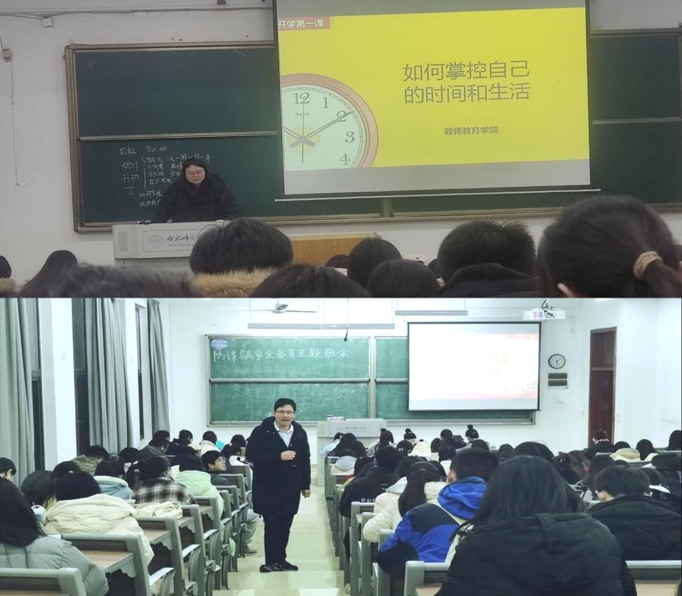 本网讯 爆竹声过一岁除,春风又绿合师院。开学初,为进一步做好学生思想政治教育工作,确保开学各项工作有序开展,引导学生调整状态迎接新学期,教师教育学院各年级辅导员在锦绣校区和滨湖校区开展主题班会。