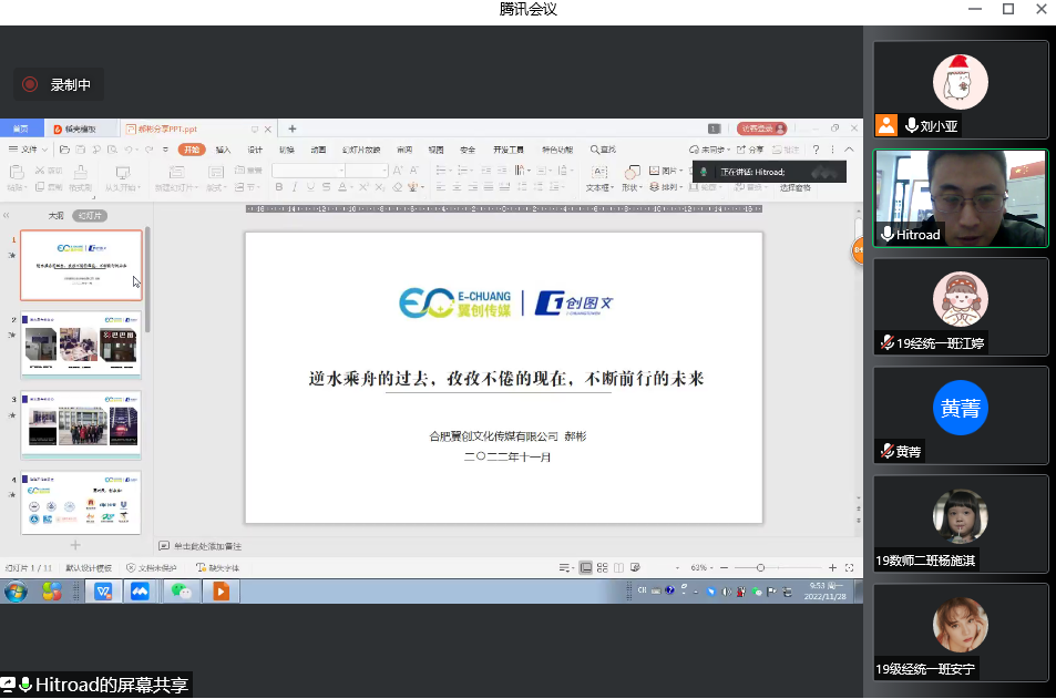 最后,郝彬介绍了公司目前的规模和发展情况,与同学们在线上进行了交流和互动,并诚邀学弟学妹们到公司参观、学习、交流。(数学与统计学院:刘全亚)