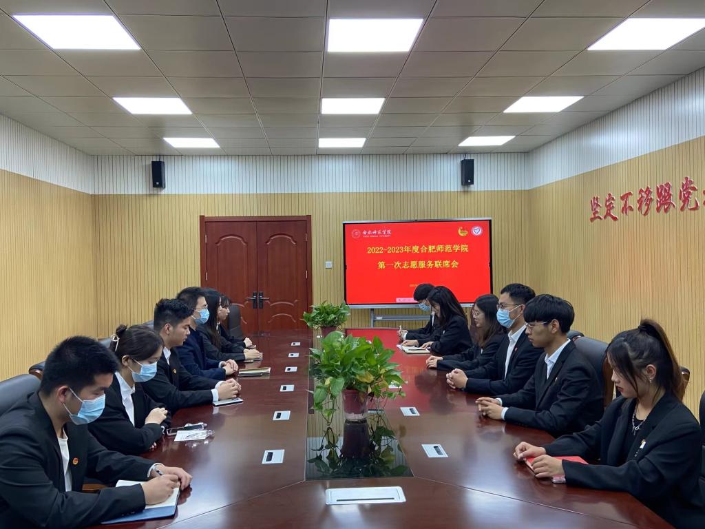 本网讯 11月2日下午,学院2022-2023学年第一次志愿服务工作联席会通过线上线下结合方式在锦绣校区共青之家及滨湖校区博学楼A108成功召开。青年志愿者联合会(以下简称“青志联”)主席团及部长团成员、各二级学院青年志愿者服务队负责人以及社团负责人参加会议。会议由青志联负责人沈淑雯主持。