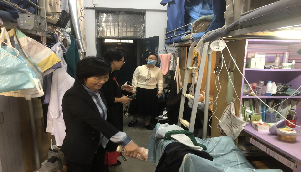 本网讯 为进一步贯彻落实近期疫情防控工作部署要求,切实加强学生宿舍的安全管理,及时了解学生学习、生活、思想动态,确保疫情防控到位、安全教育到位。10月16日中午,生命科学学院党委书记郭桃芬、党委副书记杨娜和全体辅导员深入学生宿舍,给同学们送去温暖与关怀。
