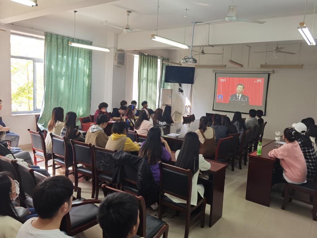 本网讯 10月16日,艺术传媒学院组织学生党员在艺术楼会议室集中收看党的二十大开幕会实况直播,艺术传媒学院学生第一、第二、第三党支部党员参会并参与热议。