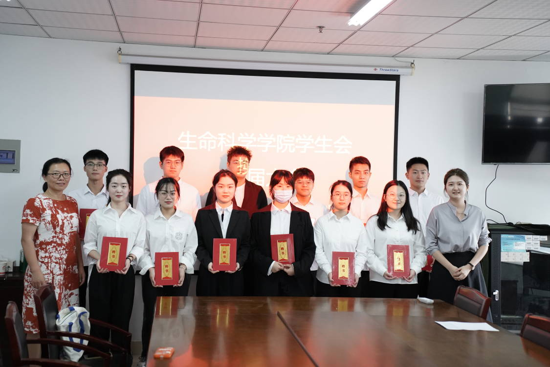 最后杨娜和黄洁为第二十一届学生会主要干部颁发了聘书。 (生命科学学院)