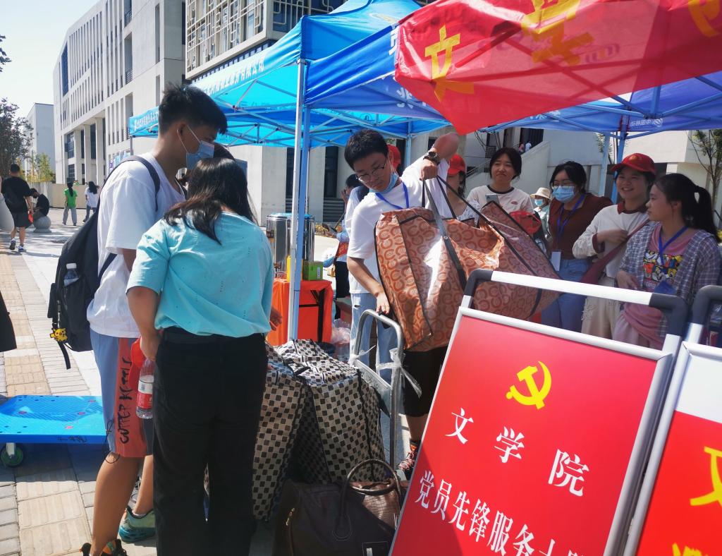 本网讯 9月12日,朝日东升,随着第一位新生的报到,文学院迎新工作正式开始。为了更好的迎接新生的到来,做好疫情常态化防控下新生报到的组织工作,文学院领导高度重视,多次就迎新工作展开部署和安排,对所有文学院迎新志愿者进行培训和合理分工,确保迎新工作有条不紊地进行。