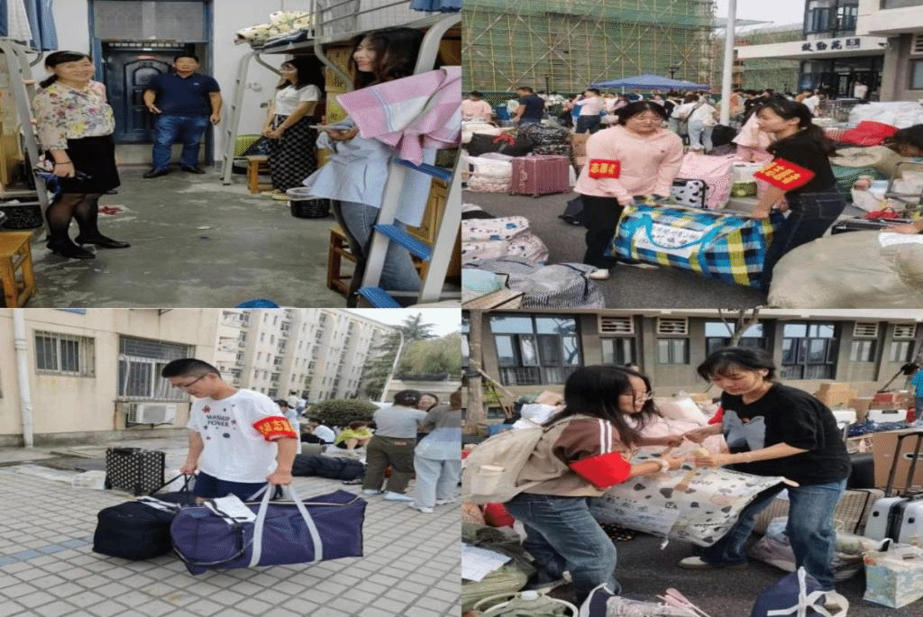 9月2日,学院领导和辅导员分别奔赴锦绣、滨湖两个校区,现场安排搬迁工作,及时为同学们做好服务。同时,学院组织在校的学生党员成立党员志愿服务先锋队,帮助同学们抬行李、搬东西。