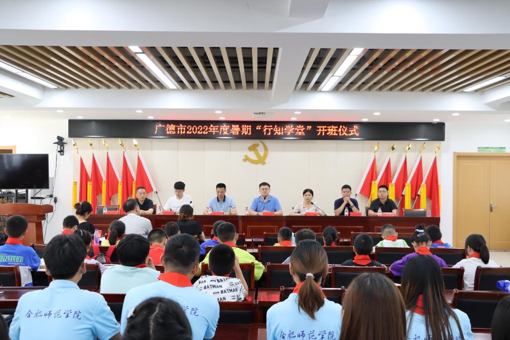 本网讯 7月12日上午,院团委广德行知学堂开班仪式在广德市祠山街道清溪社区顺利举行。广德市委常委、组织部长储德清亲切接见了我院师生一行。广德市团市委书记佘婧、副书记卢志龙,祠山街道党工委副书记陈永网,清溪社区党委书记胡大成,beat365唯一官方网站团委副书记刁文彬、兼职副书记任元波、社会实践部负责人钟树旺,“小先生”以及学员、家长代表参加仪式。会议由佘婧主持。
