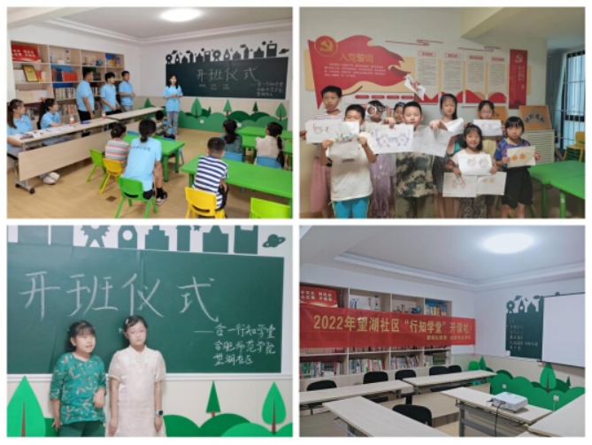 本网讯 继承行知精神,弘扬行知文化。7月7日上午,马克思主义学院“合一”行知学堂在合肥市包河区望湖社区顺利开班。来自马克思主义学院,艺术传媒学院,教师教育学院等学院的7名小先生与小学员们在合肥市望湖社区滨湖春天党群服务站举行了开班仪式。
