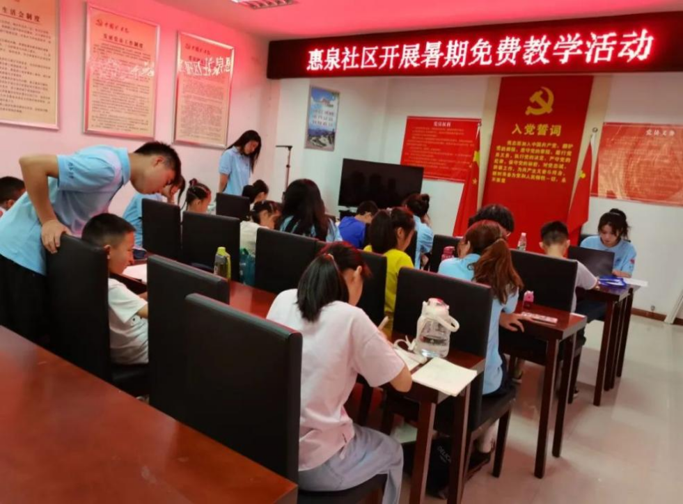 开班仪式上,“小先生”向全体学员介绍了我院行知学堂的开展背景、基本情况,以及惠泉社区和‘铜都行”行知学堂的开班准备、课程安排和注意事项。此次行知学堂为期20天,教学内容以思想品德教育、人文关怀教育、身心健康关爱为主,以课业辅导为辅,注重体现行知文化内涵,大力弘扬陶行知教育思想和理念,在有益于学员健康、快乐成长的前提下,开展灵活多样、具有特色的教学内容和活动,如党史文化教育、趣味语数外、自然与科学、手工制作、体育活动、计算机操作基础、硬笔书法、绘画等。通过一系列有趣有益的课程活动培养小学员学习的兴趣,提高沟通交流能力和动手能力,促进小学员健康快乐成长。