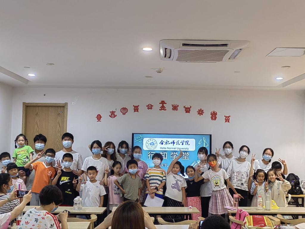 此次开班仪式是由夏稚行知学堂的领队小先生陈睿主持的。首先,她向全体同学和家长介绍了我院行知学堂的办学理念、办学背景以及学堂的概貌。行知学堂自开办以来,一直深受广大学生的喜爱,在安徽多地以公益课堂为形式开展,引导青年学生实践出真知、实践长真才,也曾多次被《中国青年报》《人民日报》等媒体宣传。本次夏稚行知学堂以“思想教育”“兴趣培养”“科学普及”“情感教育”“心理辅导”“劳动教育”“公益实践”“安全防护”“课业辅导”为主要内容,开展了十五项课程,并安排专门的小先生进行教学教导。