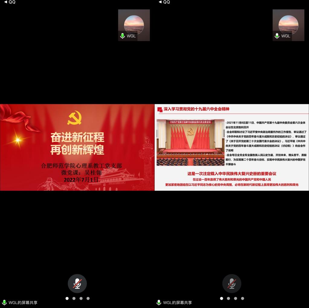 本网讯 为庆祝中国共产党成立101周年,迎接党的二十大胜利召开,进一步浓厚“七一”伟大建党节日氛围,强化党的创新理论武装,按照学院党委的要求,2022年7月1日,教师教育学院心理系教工党支部组织开展“百名书记讲百堂党课”之“奋进新征程、再创新辉煌”专题微党课。本次党课由党支部书记吴桂翎主讲,全体党员参加活动。