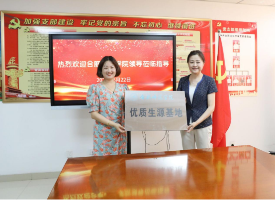 为做好此次招生宣传工作,马克思主义学院分别成立教工和学生2支招生宣传队。6月22日,教工宣传队由总支书记吕田力、副院长陶有浩带队前往合肥锦绣中学进行宣传。在与锦绣中学管理团队的座谈会上,吕田力感谢合肥锦绣中学近年来为马克思主义学院思想政治教育专业提供的优质生源,希望有更多的合肥锦绣中学的优秀考生报考思想政治教育专业。座谈会结束后,举行了“beat365唯一官方网站优质生源基地”授牌仪式。