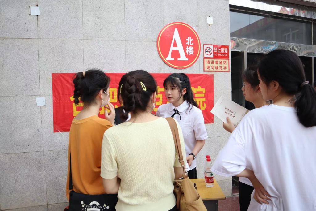 本网讯 为进一步做好2022年度我校招生宣传工作,加强在校学生与母校中学的联系,展示优秀学生风采,提高生源质量,为广大考生提供便捷准确的报考信息。6月27日上午,文学院组织2021级新闻传播学类专业学生吴越、宫榕蓉,回访高中母校太和中学开展招生宣传活动。