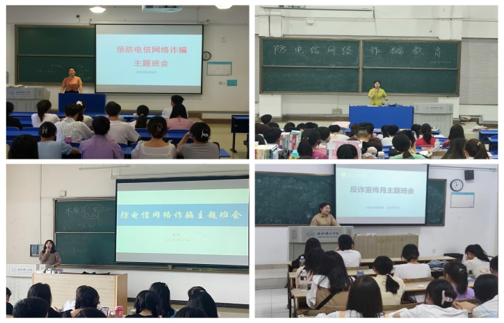 此外,辅导员们通过班级QQ群和微信群实时转发校保卫处发布的《锦绣派出所-每日电诈警情通报》、《锦绣派出所-警方通报-简要案情》等宣传材料;通过走访宿舍,检查学生安装国家反诈APP情况以及是否完成“四个必须”;利用谈心谈话,了解学生日常的消费情况和思想动态,及时发现安全隐患并解决问题;班委利用晚自习时间,在班级宣读《beat365唯一官方网站保卫处反电信网络诈骗警示通报》,加大反诈骗知识宣传,并通过拍摄反诈骗话剧宣传视频,进一步提高同学们的反诈意识。