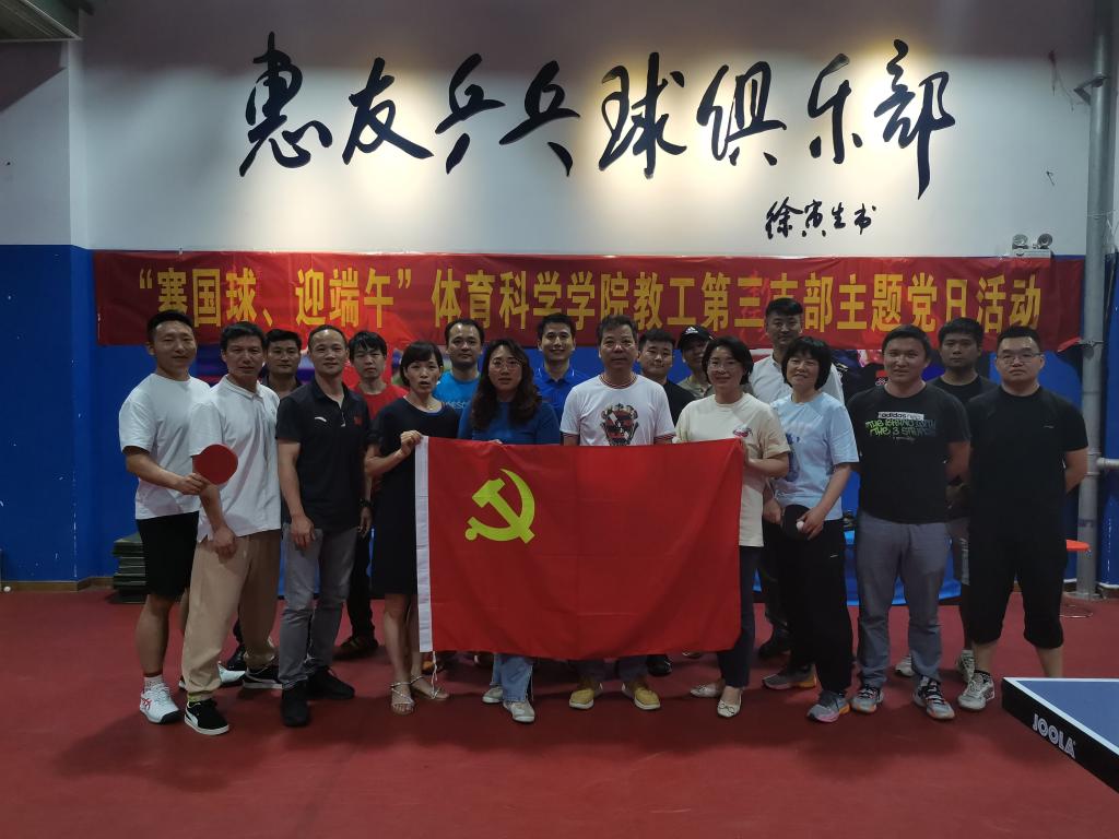 本网讯 为丰富党支部的组织生活,充分发挥党建引领作用,创新党支部主题党日活动形式,提高支部教师的身体素质,倡导全民健身的理念,6月1日下午,体育科学学院教工第三党支部在体育馆三楼乒乓球馆组织开展“党建引领促健康”乒乓球比赛。支部全体教师党员、统战对象参加。