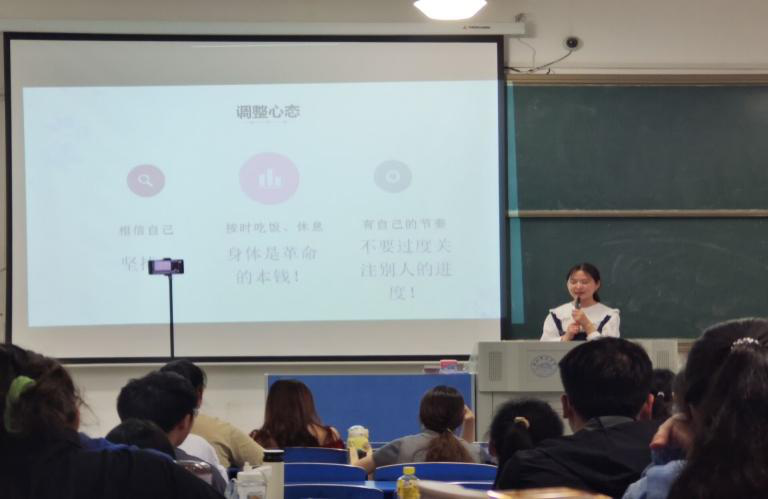 本网讯 为帮助21级新生进一步做好学业规划,激发学生考研热情,提前做好考研思想准备。4月24日晚,生命科学院2021级在逸夫楼305举办了考研思想动员交流会。本次分享会邀请了2018级准研究生刘磊、蒋凯莉两位学长分享考研上岸经验。2021级全体学生通过线上线下相结合的方式参加了此次交流会。