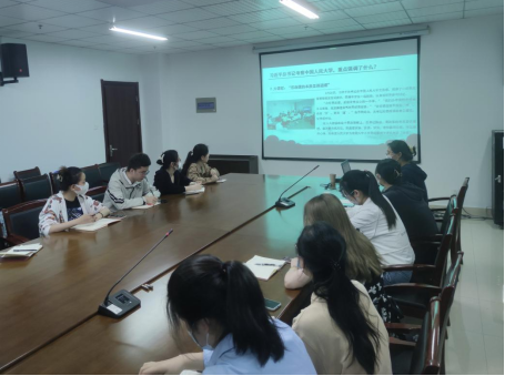 本网讯 4月27日晚,外国语学院在行知楼1002会议室学习习近平总书记在中国人民大学考察时的重要讲话精神,院学生第二党支部全体学生党员参加学习,会议由学生第二党支部书记冯晓敏主持。