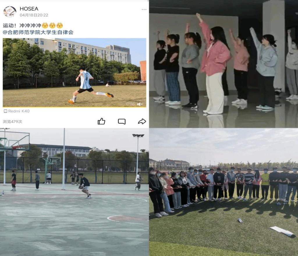 活动期间,同学们积极开展跑步、跳舞、拔河、踢球等各种体育锻炼活动,形式多样,丰富多彩。大家把运动情况录制成短视频,上传至今日校园、抖音、QQ或微信等平台,同时在大学生自律委员会微信公众号进行打卡。同学们热情高涨,脸上洋溢着笑容,纷纷表示“通过本次活动既锻炼了身体,又放松了心情,收获满满”。活动现场充满欢乐与喜悦。