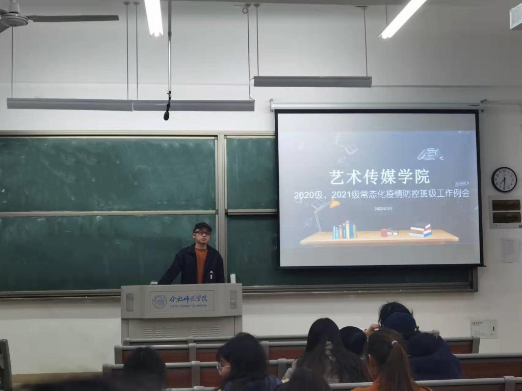本网讯 为进一步做好校园疫情防控工作,引导学生正确认识当前疫情形势,3月18日-3月25日,艺术传媒学院各年级辅导员采用线上线下的方式,分别在锦绣、滨湖两个校区召开疫情防控主题班会。