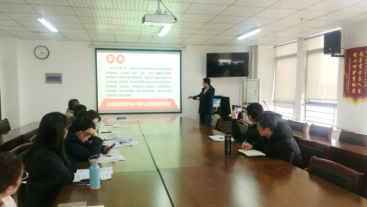 本网讯 为深入学习《中共中央关于党的百年奋斗重大成就和历史经验的决议》精神,3月23日下午,生命科学学院生物科学教工党支部在行知楼1502室开展了“汇聚起坚定历史自信创造复兴伟业的磅礴力量”专题党课活动。本次党课由该支部宣传委员朱勇主讲,支部书记王占军主持,生物科学教工党支部全体党员参加学习。