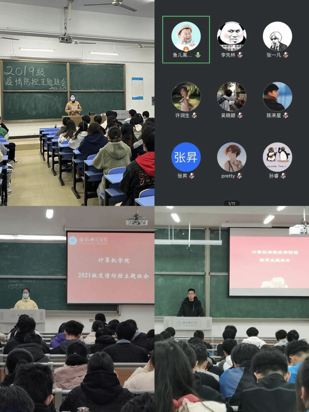 本网讯 为贯彻落实上级部门及学校关于新型冠状病毒肺炎疫情防控的工作部署,切实提升我院学生的个人防护意识和能力,计算机学院各年级于3月18日至19日分别在锦绣校区和滨湖校区召开疫情防控主题班会。