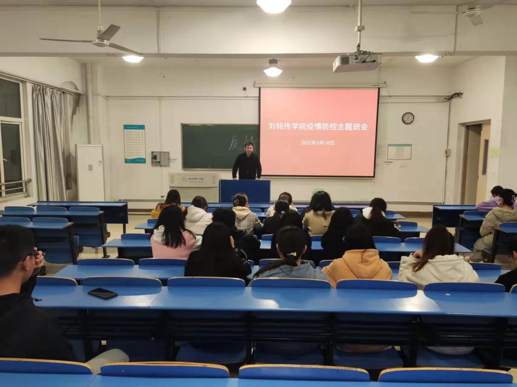 本网讯 为进一步做好学校新冠肺炎疫情防控工作,增强同学们疫情防控意识,同时认真学习《beat365唯一官方网站强校园疫情防控工作的通知。3月18日晚,刘铭传学院召开各年级疫情防控主题班会。