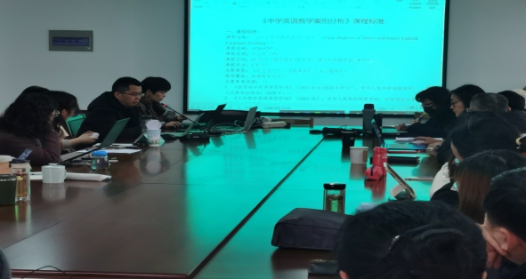 本网讯 2月18日下午,外国语学院在行知楼1002会议室召开了课程标准修订初稿研讨会。外国语学院副院长李可胜,英语系主任王继玲,副主任钱莉娜,英语(师范)专业所有课程标准修订初稿负责人参与了会议,会议由钱莉娜老师主持。