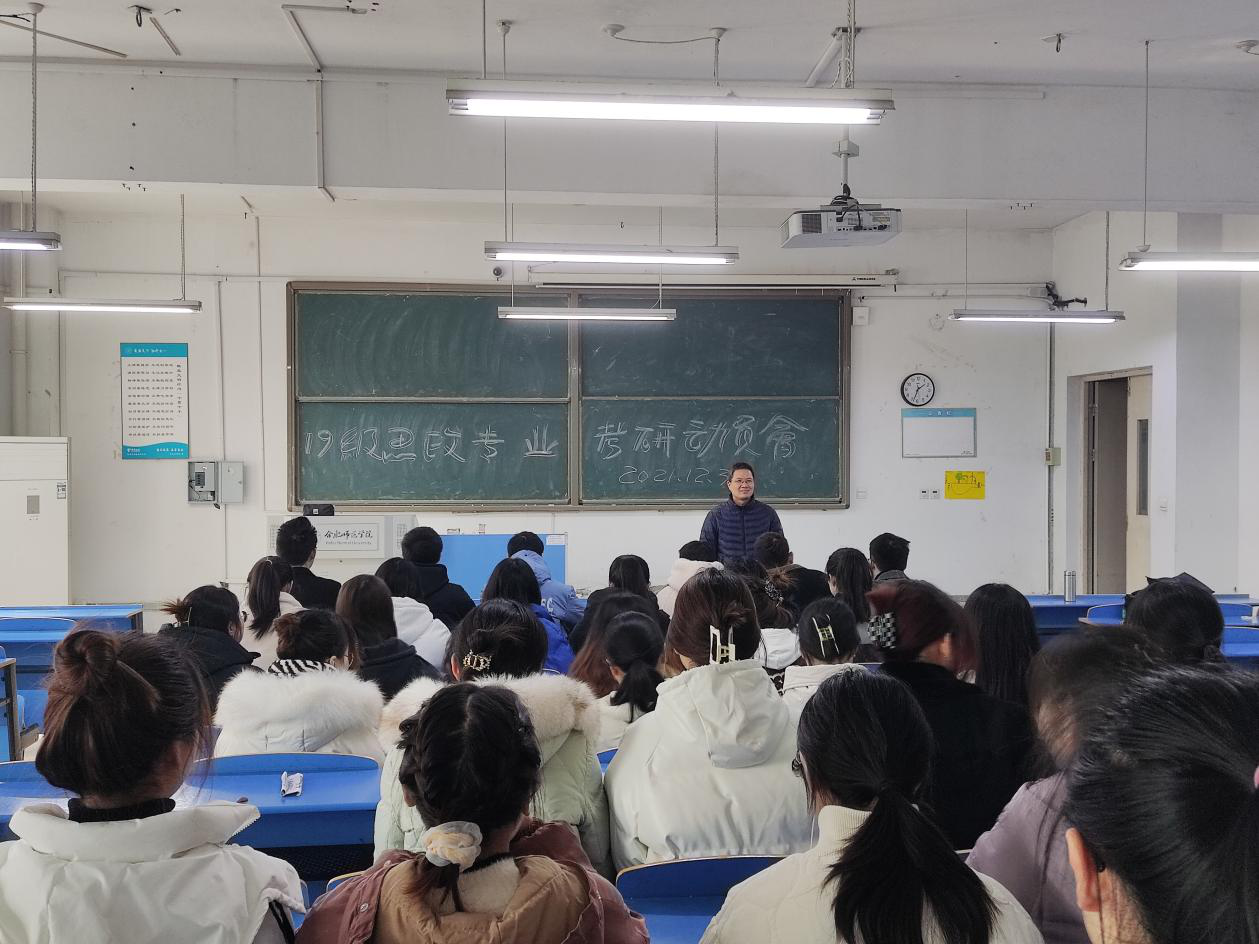 本网讯 为充分激发学生的学习积极性,进一步明确专业发展方向和考研志向,12月30日下午,马克思主义学院2019级考研动员会在逸夫楼A107教室举办。2019级思想政治教育专业全体同学参加,活动由政法系何光辉老师主持。