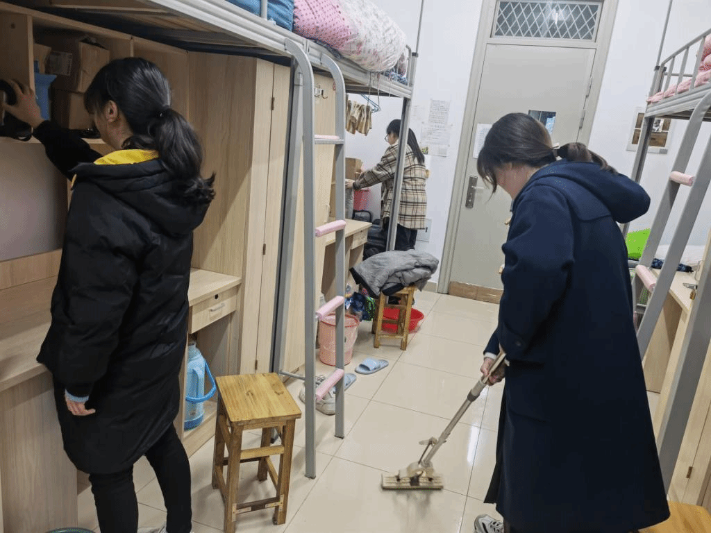 10月上旬,学院成立了以院长、书记为组长,副院长、副书记、辅导员为成员的劳动教育领导小组,制定部署了“3+X”的劳动教育方案,即教室劳动、寝室劳动、家庭劳动与其他服务性项目相结合的劳动形式,参与劳动教育班级共承担10间教室卫生维护工作。各班级分别成立了以辅导员为组长,劳动委员为副组长,班委代表为成员的劳动教育考评小组,负责教室卫生的检查和督导工作。学院进行定期对教室卫生和寝室卫生进行检查督查。