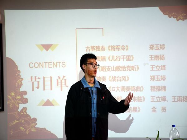 青春是张扬的,青春是独一无二的。热烈的掌声响起,联欢会就此拉开了序幕。紧张而神秘的古筝独奏《将军令》,展现了古代将士征战沙场、得胜归来的壮伟场面;情感丰富的《儿行千里》,为在场所有人带来了内心的感动;家喻户晓的红歌《唱支山歌给党听》,为党的百年华诞送上生日祝福;气势磅礴的古筝曲目《战台风》,用紧张激烈而又优美抒情的音乐,成功地塑造了码头工人大无畏的精神和压倒一切困难的英雄气概;优雅明快的钢琴独奏《G大调奏鸣曲》,将晚会带进了欢快的气氛中;值得一提的是,退伍返校大学生王立绎同学和他的同学王雨杨共同合唱《当那一天来临》,生动描绘了军队战士士气磅礴、战意凛然的宏伟画卷,也时刻提醒我们,时刻牢记历史教训,不能轻易懈怠,要以一种居安思危的态度防患于未然;联欢会步入尾声,就业创业工作处全体人员和就业创业工作助理共同合唱《夜空中最亮的星》,将全场气氛带入高潮,也激励着每个人要带着青春的梦想,带着年轻的底气与冲劲,向梦想展示热爱的力量。
