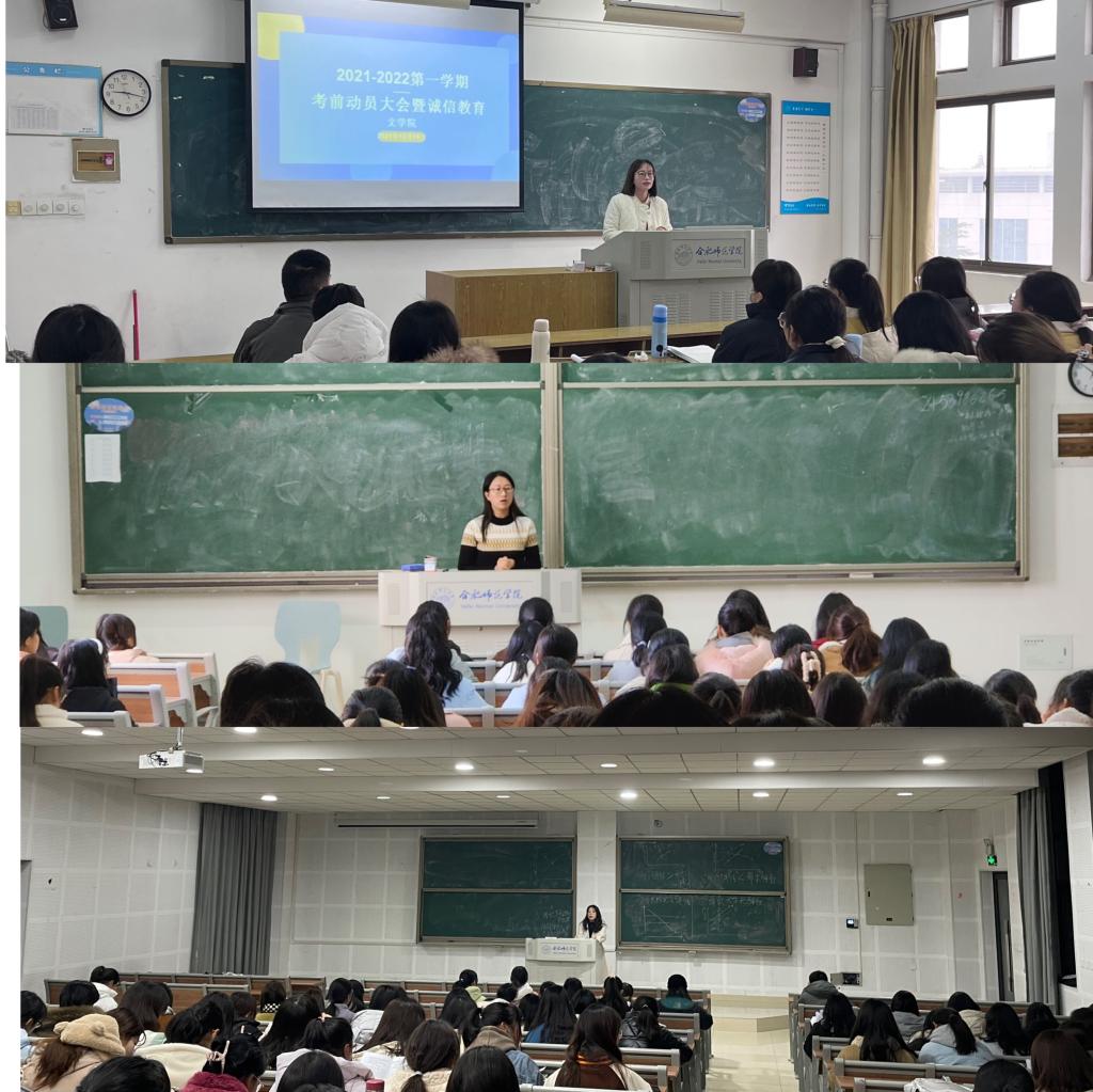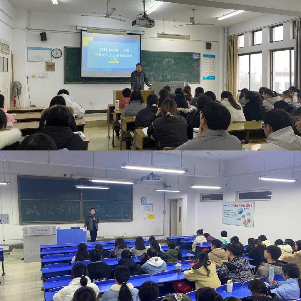 会上,各年级辅导员带领大家重新学习了《国家教育考试违规处理办法》和《beat365唯一官方网站学生考试违规处理办法》的相关规定,主要围绕学生的诚信教育、考风考纪的严肃性和重要性、考试作弊违纪处分教育以及考试作弊的危害等,倡导“诚信考试”,使学生能充分认识到考试的严肃性和考试违纪、舞弊的危害性,形成“诚信考试”和自觉杜绝作弊的共识。同时要增强现代意识和竞争能力,以拼搏进取的精神,全面、认真地开展复习,诚实、冷静地迎接四六级和期末考试,树立优良学风、实现零作弊尽到自己的义务。党员和学生干部应做好模范带头作用,营造浓厚的班级学习复习考试的氛围,并严格考试纪律,争做有为青年。