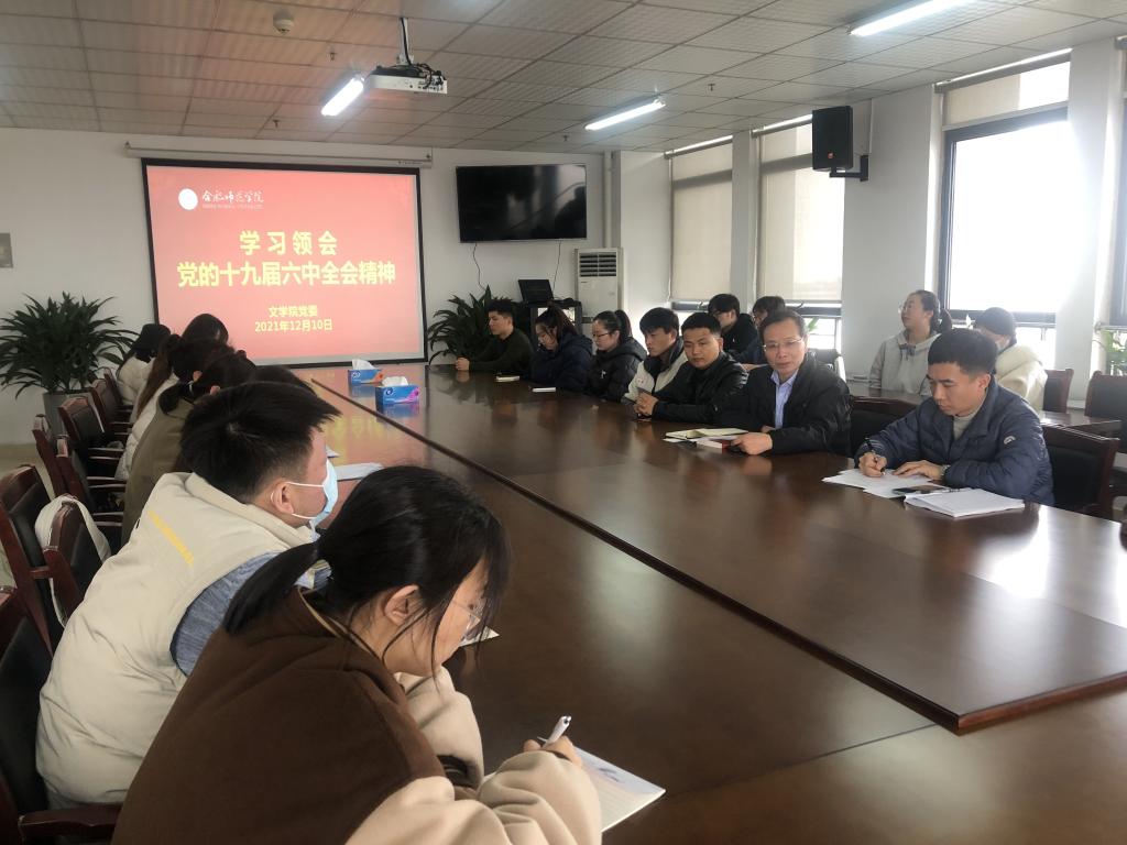 本网讯 12月10日中午,文学院新媒体系学生党支部召开党员大会,集中学习党的十九届六中全会精神。文学院党委书记李旺生出席会议并领学,新媒体系学生党支部全体党员参会。