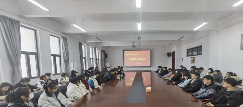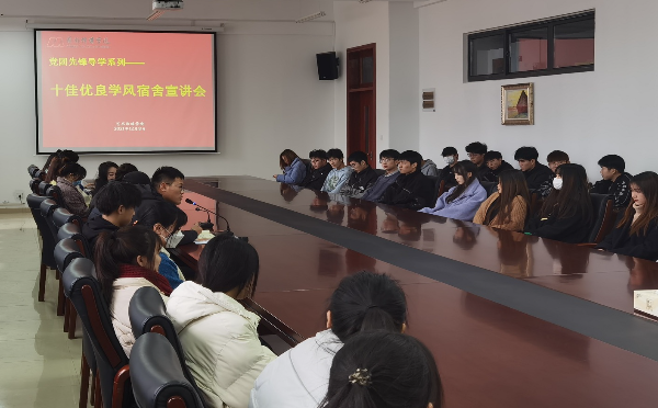 本网讯 为加强典型选树,引导学生树立良好学风,做好榜样示范。12月8日,艺术传媒学院在滨湖校区第二会议室举行了“十佳优良学风宿舍”及“国奖风采”宣讲会。艺术传媒学院滨湖校区各专业学生代表参会。会议由辅导员邰文强主持。