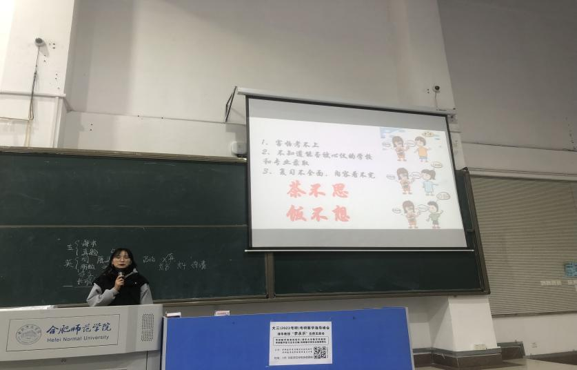 最后,郭桃芬进行总结讲话,她首先感谢各位老师从百忙之中抽出时间为同学们提供全方位的考前指导和答疑解惑。她指出,各位老师不仅为同学们提供了可贵的应考经验、复试技巧以及相关注意事项,提出了一些切实可行的意见建议,同时还想方设法为同学们缓解压力,打气鼓劲,可谓用心良苦。同时,她希望同学们在备考过程中,调整心态,排解压力,做好情绪管理,保持良好的精神状态,不厌倦、不放弃,坚定信心,沉着应考,坚守底线,诚信考试。既然选择了远方,便要风雨兼程,要以钉钉子精神和咬定青山不放松的的恒心和韧劲打好这一仗,用真才实学造就无悔青春。最后她预祝考研同学旗开得胜、马到成功,考上自己心仪的学校。