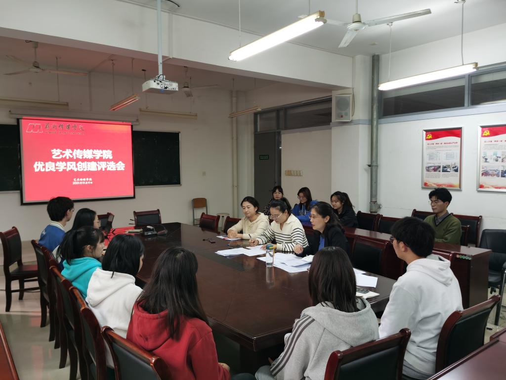 本网讯 为营造良好的学风氛围,选树学风典型,提高学风创建成效,11月4日,艺术传媒学院开展2021年优良学风创建院内评选活动,本次活动由艺术传媒学院党委副书记沙渺,辅导员赵振岭、戴玉佩、邰文强、李舒担任评委,全院共20个班级,30个宿舍、31名个人参加评选,评选会分两个校区举行。