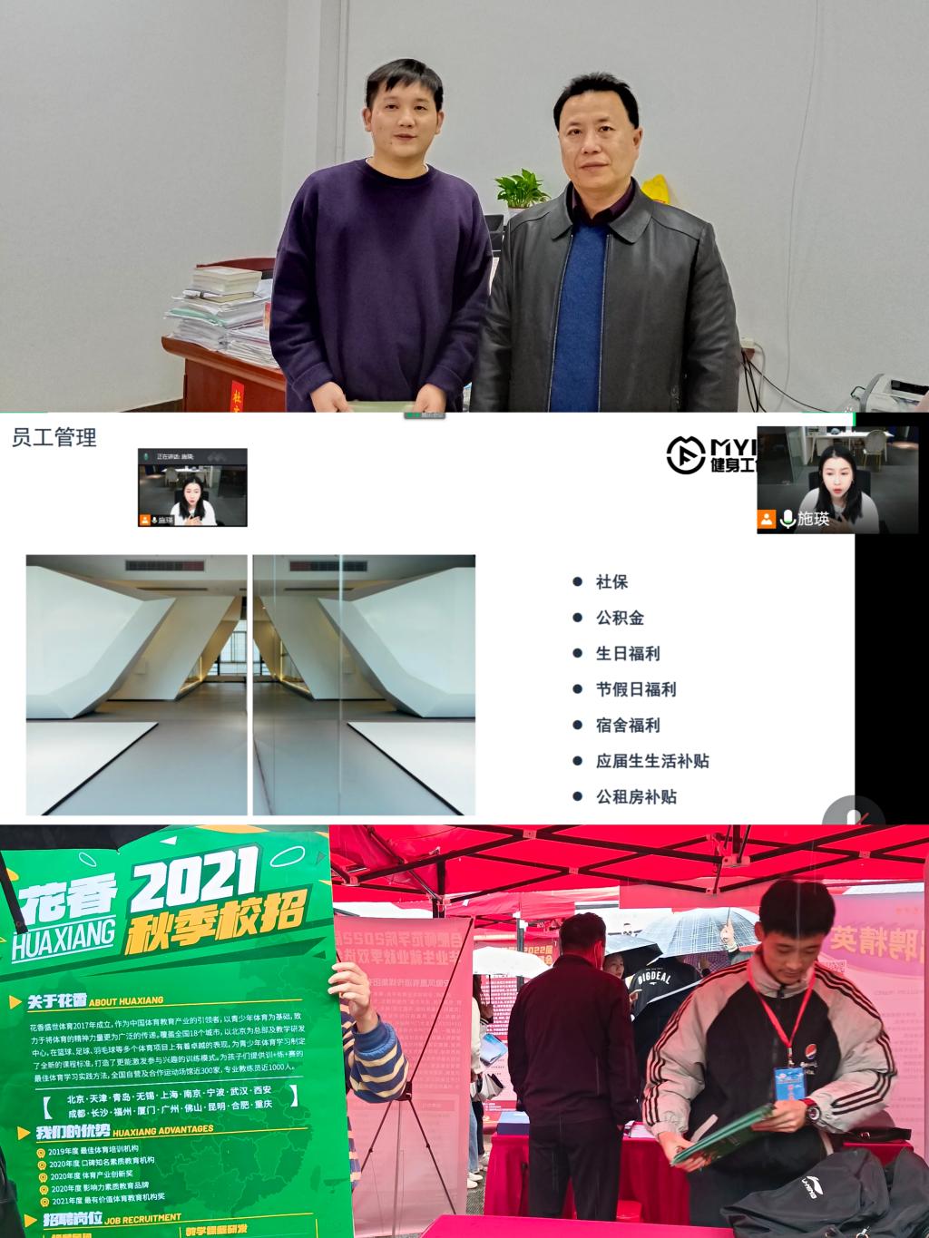 校企合作,深耕细作。线上招聘宣讲与线下招聘会结合,进一步搭台唱戏,提升学院专业人才吸引力,谋求校企合作,深度探索毕业生就业发展渠道。与上海呈康体育协商合作模式如开办篮球主项虚拟班级、寒暑假对口实习等方式实现毕业生高质量满意就业。