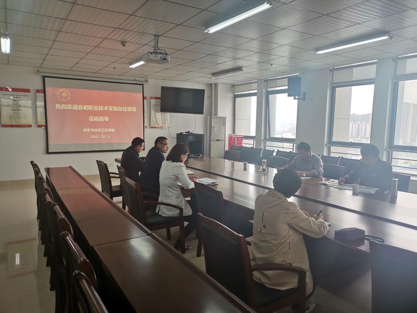 本网讯 10月13日,为落实《安徽省教育厅关于进一步规范和加强普通专升本联合培养工作的指导意见》要求,合肥职业技术学院到我院就制药工程专升本联合培养事宜进行洽谈。合肥职业技术学院生物工程学院刘修树院长、药学化学教研室主任范高福主任,化学与化学工程学院董华泽院长、郑斌主任,相关老师,参加会议。