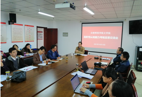 本网讯 高阶性不仅是课程教学的内在要求,也是学生综合实践与考核的重要内容。为进一步提高课程教学与考核的高阶性,培养学生高阶性认知能力,文学院积极谋划,开展“高阶性认知能力考核与反思”活动。10月13日下午,文学院围绕汉语言文学专业2020-2021学年第二学期期末考核情况,召开了首场“高阶性认知能力考核与反思”交流会。文学院院领导和汉语言文学专业全体教师参加了交流会。
