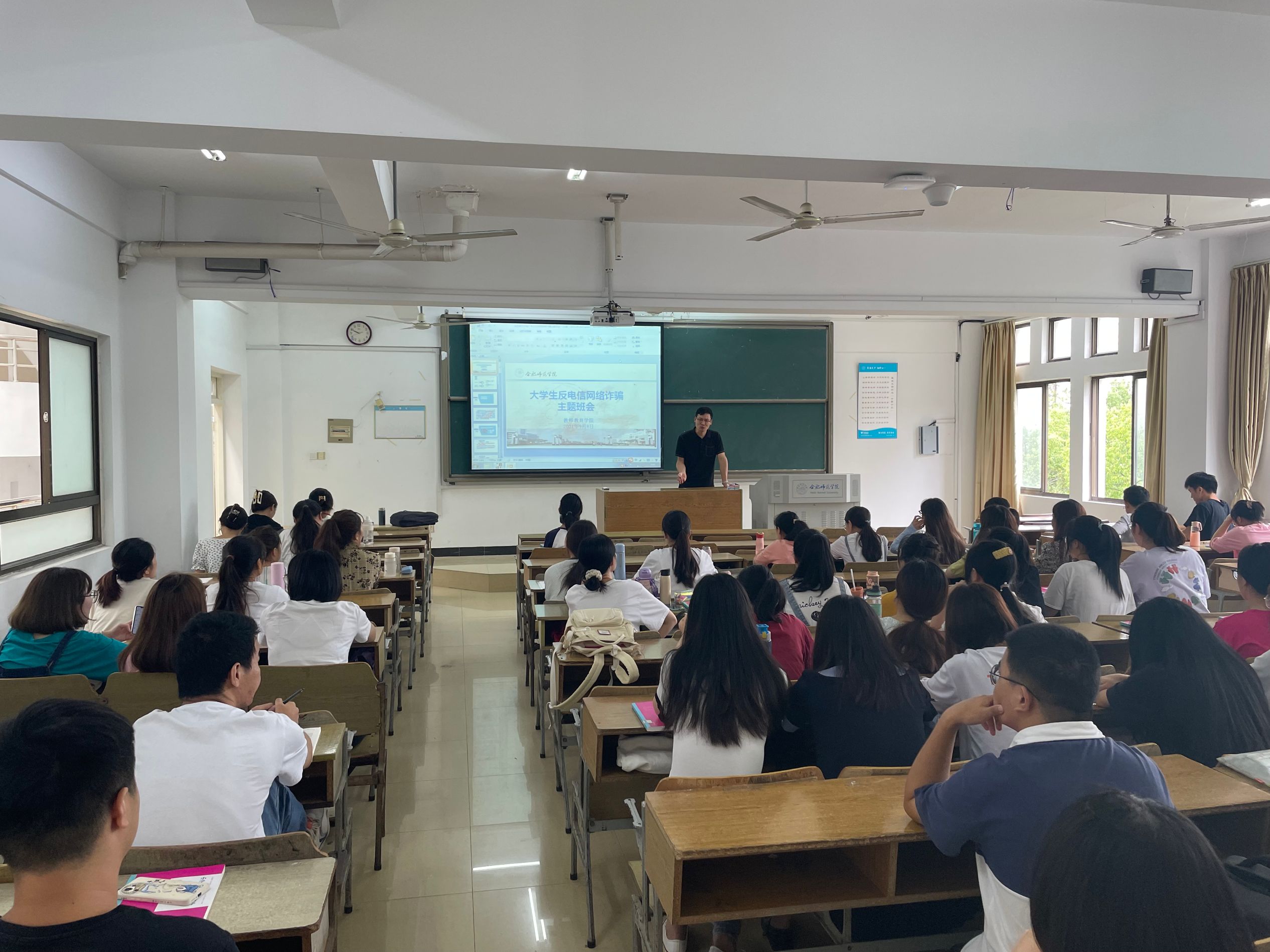 辅导员屠家宝于9月8日至15日分别在两个校区开展反诈安全教育主题班会,主要围绕“反电信网络诈骗”、“班级学风建设”以及“愿景和职业规划”三个方面展开。