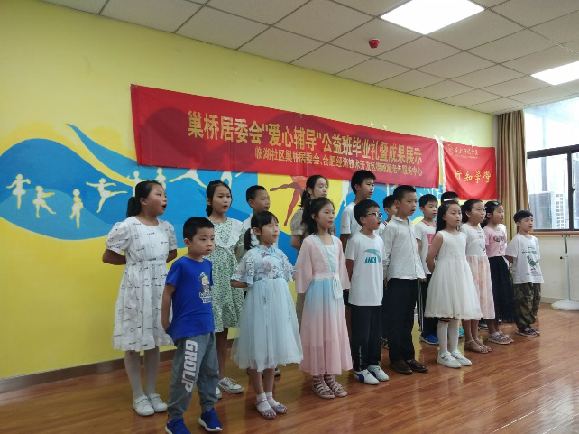 本网讯 7月26日,物理与材料工程学院开办的“筑梦巢桥”行知学堂结课汇演在巢桥居委会三楼舞蹈室隆重举行,巢桥居委会副主任周玥主任、小学员家长和全体“小先生”、小学员一起观看了本次汇演。
