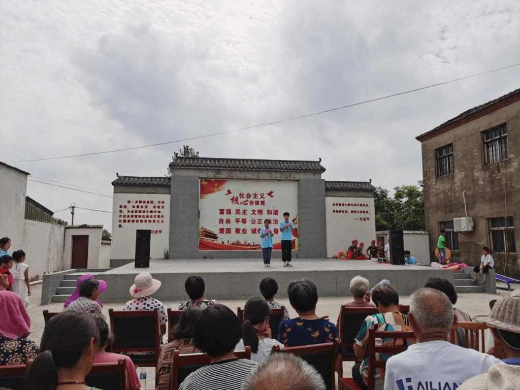 本网讯 7月23日,在驻村工作队队长李万成的指导下,经过行知学堂8名小先生的周密策划和精心准备,生命科学学院口孜镇王庄村行知学堂于村民委员会大舞台开展主题为“社会实践助力乡村振兴,行知学堂服务留守儿童”的结业文艺汇演,驻村工作队和村两委干部作为特邀嘉宾参加了汇演。