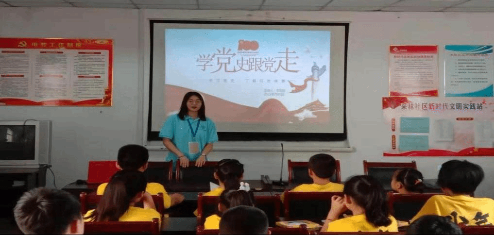在开班仪式上,徐超对“小先生”和小学员们的到来表达了热烈的欢迎,同时也介绍了“行知学堂”的办学宗旨和教学理念,强调了本次实践活动的公益性。“小先生”代表王雨欣也向小学员及其家长们重点介绍了本次行知学堂实践活动主要开设了党史故事、趣味英语、趣味数学、自然科学、手工制作、安全教育、心理辅导等共计13门课程。最后,本次开班仪式在“小先生”和小学员们的互动交流中结束。