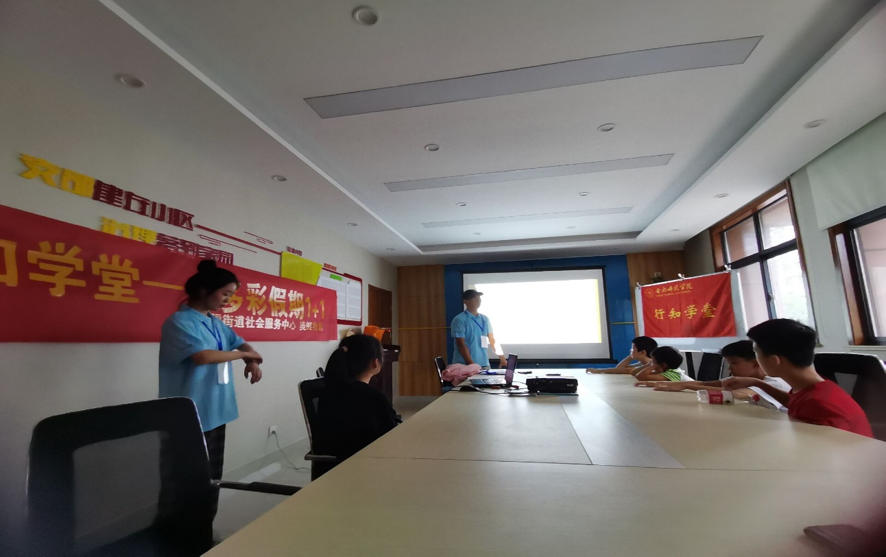 7月13日,邓美妮讲授的“认识植物总纲”正式开启了美虹行知学堂的第一课。随后陆续开展的课程还有动物教学、街舞教学以及音乐教学,管翔宇、叶寒、潘嘉伟三位“小先生”都做了充分的教学准备,针对十几名小学员的情况选择合理的教学方式,帮助学员们在轻松活泼的环境中增长知识。