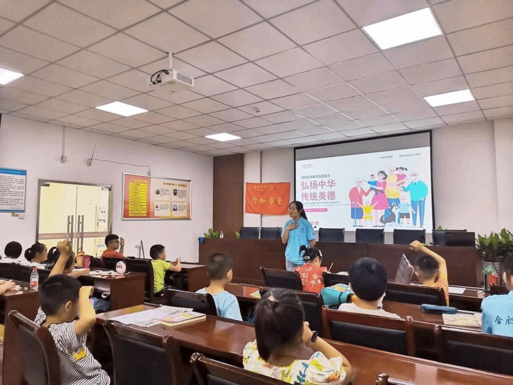 仪式上,沁心湖社区负责人表示行知学堂的开办对提升社区为民服务有很大的帮助,对“小先生”们不畏酷暑前来开展志愿服务表示欢迎和感谢!同时勉励小学员们要听老师话,好好配合老师,过一个愉快的假期;同时要求家长,支持“小先生”们的工作,确保学员们的安全。