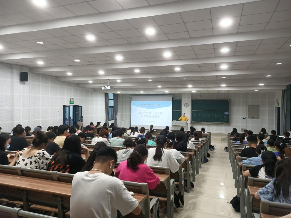 本网讯 7月4日下午,数学与统计学院在滨湖校区博学楼A108举行2021年暑期“三下乡”暨行知学堂动员培训会。指导老师、行知学堂小先生及参加暑期“三下乡”活动的同学参加了会议,会议由刘全亚主持。