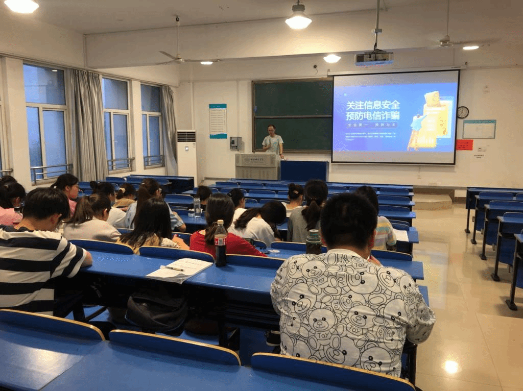 主题班会结合学校最近发生的真实案例,特别解读了国家反诈中心发布的网络刷单“杀鸟盘”、情感骗财“杀猪盘”、冒充客服等十大高发诈骗类型,向同学们发出反电信诈骗的“灵魂”九问,讲解了大学生有可能遇到的骗局以及应对措施,告诫同学们遇到陌生短信电话、中奖信息、汇款等事情一定小心谨慎,仔细甄别,千万不要轻信和上当受骗。
