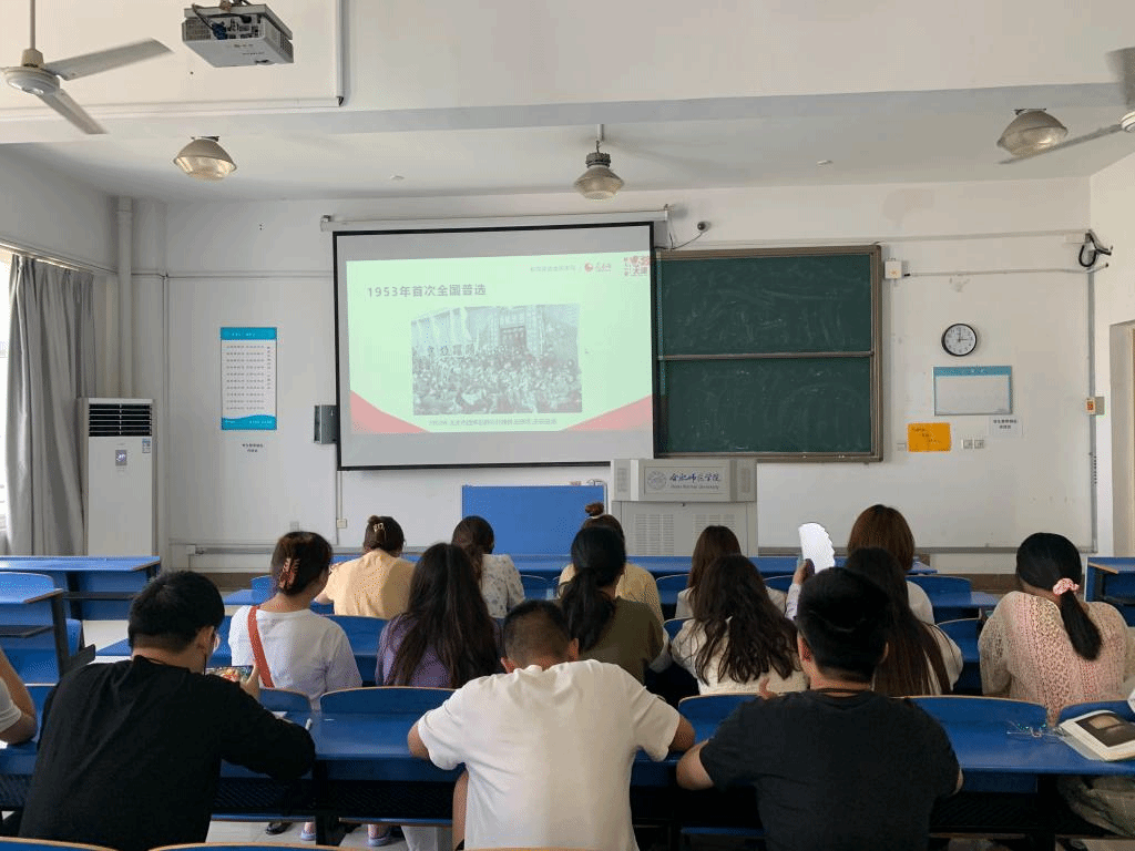 同学们认真观看并进行相关的记录。在集中观看后,各班班长组织同学们进行交流讨论,同学们认真参与、各抒己见。其中,2020级计大宇同学说道:“中华民族伟大复兴仍在路上,历史的先行者用他们的精神、血肉筑起了进步的阶梯,乘坐在历史高速列车上的我们,没有停息的理由,只有不断前进、勇于奋斗,不忘初心,牢记使命,才无愧为中华民族的儿女,国强我耀。”2019级何文涛同学说道:“历史是最好的教科书,知史爱党,知史爱国。知道我们党的艰辛历程,更让人坚定党的领导。中国共产党的出现,让中国人有了主心骨,古老中国展示出勃勃生机。党用行动来证明自己是最忠诚的,是最捍卫中华民族利益的。让中国人挺起胸膛,站了起来。没有共产党,就没有新中国。”2017级杨俊同学说道:“这一堂思政大课让我对新中国的历史有了更深刻的认识,作为新时代的青年,我会继续努力,为社会贡献自己的力量。”