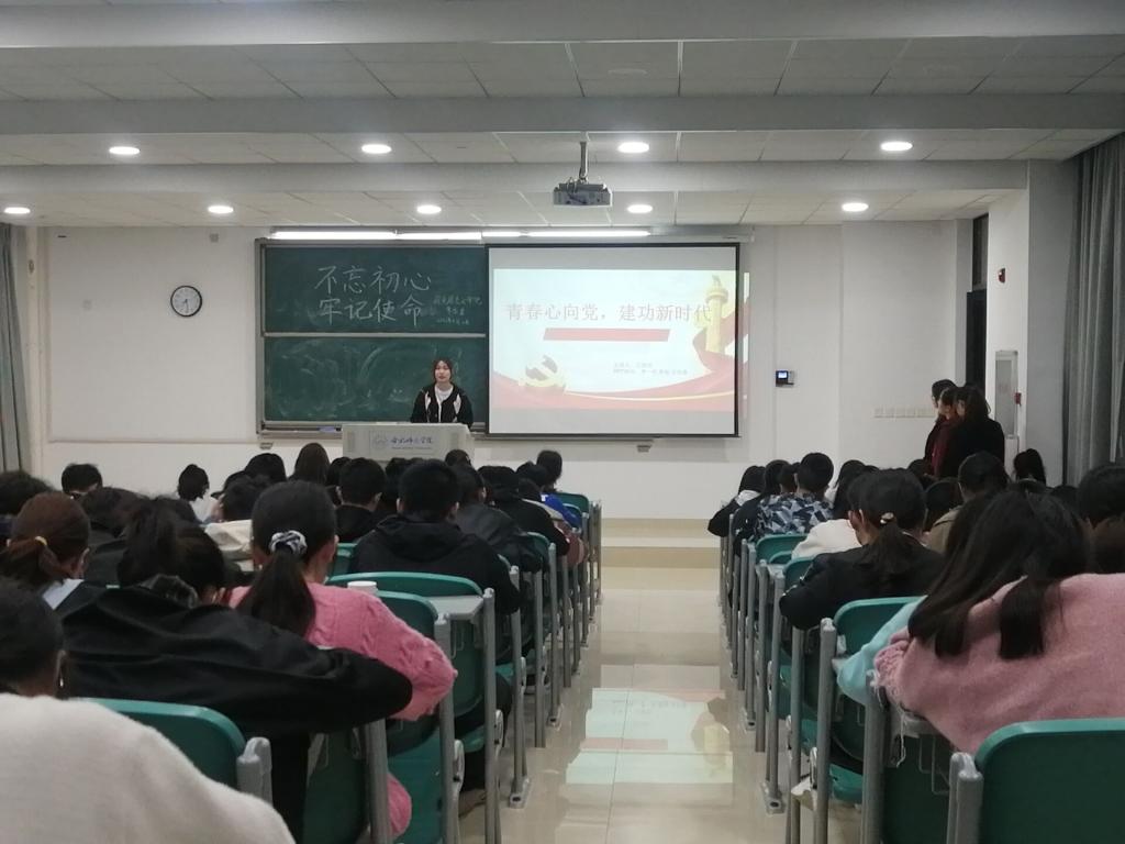 本网讯 4月10日,马克思主义学院学生会在博学楼A205教室举办以“学党史·担使命”为主题的“思责守正”学子大讲堂活动。思想政治教育专业和其他专业近100人参加此次大讲堂,活动由马克思主义学院学生会文体部干事刘亚宁同学主持。