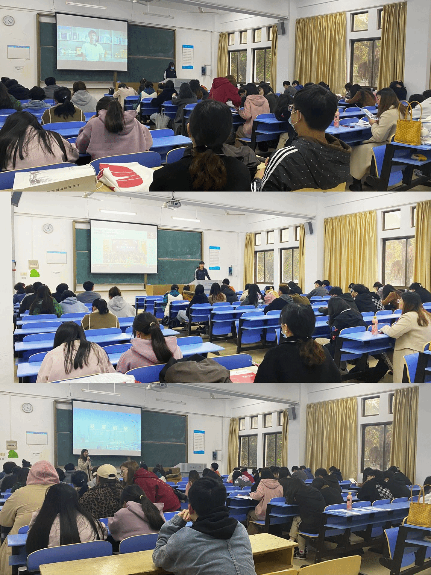 此次系列宣讲会分为企业宣讲和自主招聘两个环节。三家企业的招聘人员分别从公司概况、用人需求、发展前景等角度向毕业生全面介绍企业的整体情况,并在宣讲会后举办了现场面试。