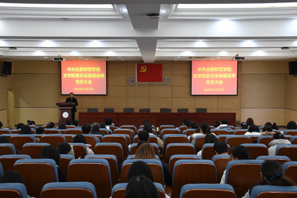 本网讯 根据《中国共产党章程》《中国共产党基层组织选举工作条例》的相关规定和上级党组织的有关要求,12月23日下午,文学院党委在锦绣校区学术报告厅召开换届选举党员大会,文学院党员参会,校纪委办有关同志到会指导。会议由陈好主持。